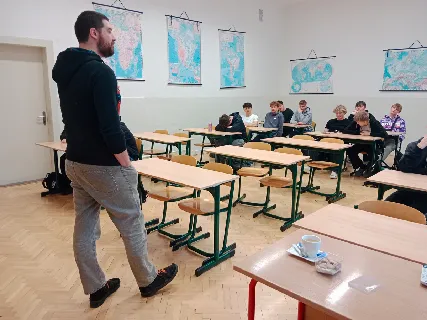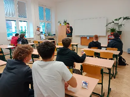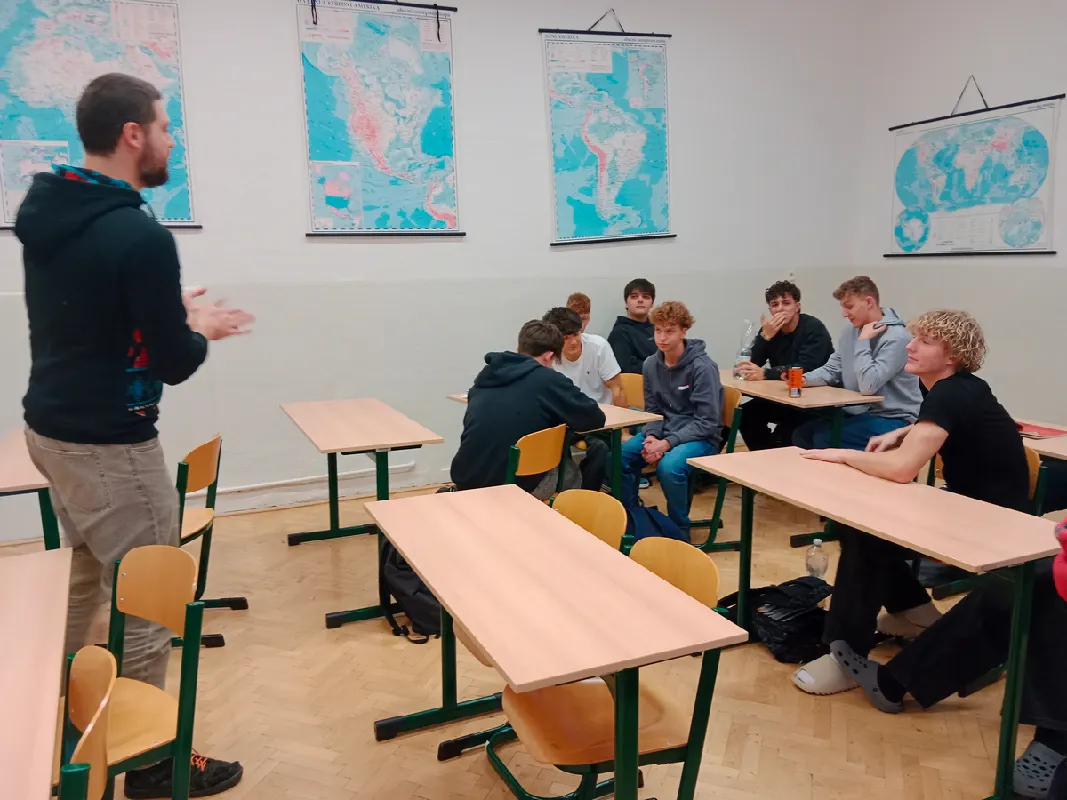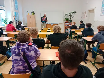 Dne 1. 12. 2025 proběhl rovněž Divadelní workshop – Seznamte se s divadlem pro třídu E3b. Žáci se interaktivní, hravou formou seznámili s historií divadla, od rituálu přes performance po ustálené divadelní formy. Poznali principy činohry, opery i baletu. Celým workshopem je provázel herec a divadelní lektor Divadla F. X. Šaldy Jan Jedlinský.