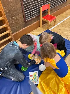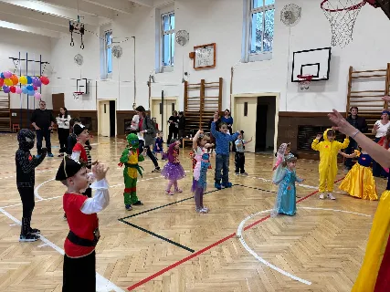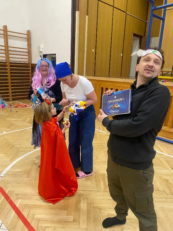 V tělocvičně školy jsme si s rodiči užili naše každoroční MAŠKARNÍ ODPOLEDNE se soutěžemi, hudbou a tancem. Děti i někteří rodiče nejdříve předvedli své masky, společně jsme si zatančili a poté plnili úkoly na stanovištích. Za splnění úkolů čekala na každého odměna u stánku s cenami.