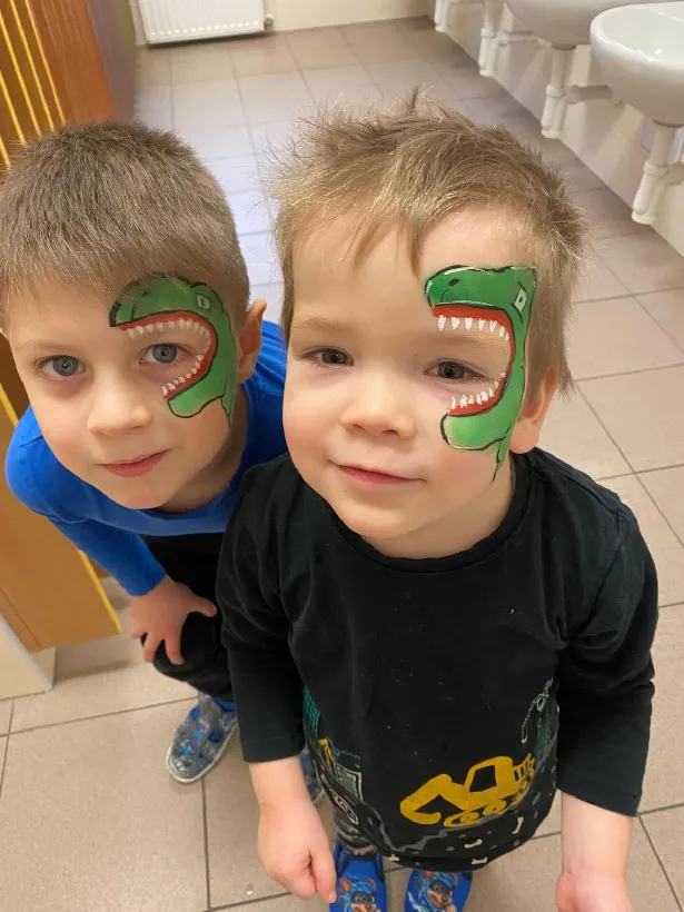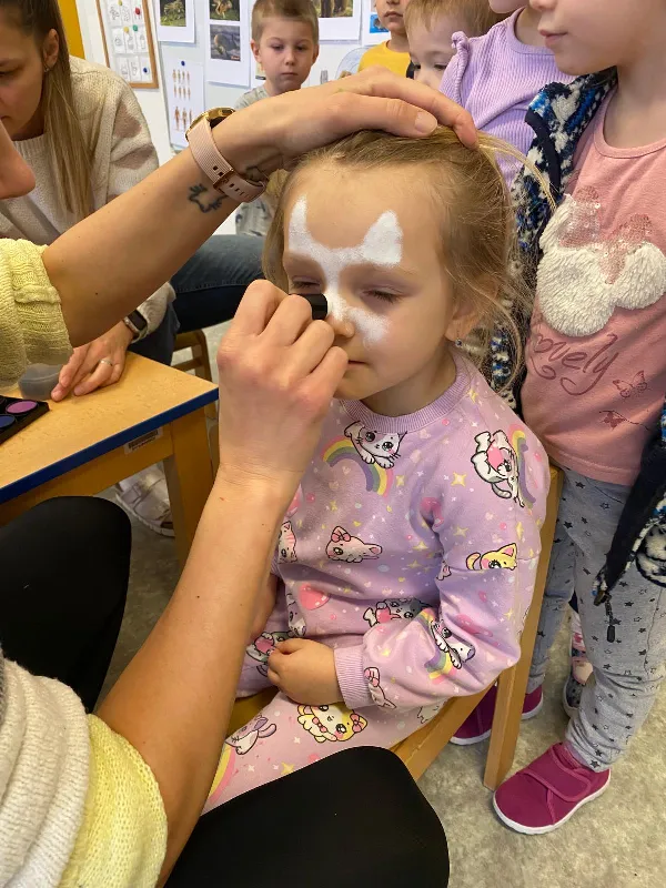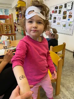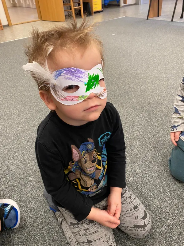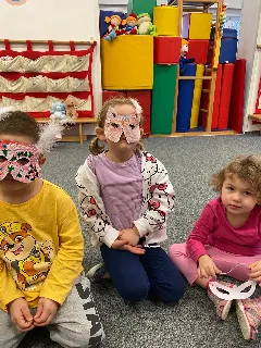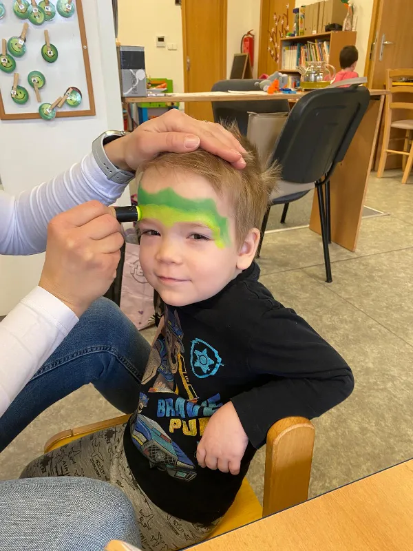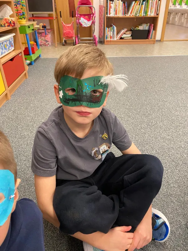 Tématický týden MASKY, ZVÍŘECÍ A LIDSKÉ TĚLO jsme začali rozhovory o rozdílech mezi zvířecím a lidským tělem. Kreslili jsme sebe a zvířátka, vyrobili papírové masky, zacvičili jsme si s našimi oblíbenými plyšáky. Zjišťovali jsme, jaké jsou mezi nimi rozdíly a co máme naopak my lidé se zvířátky společného. Proměnili jsme se pak podle přání v různé postavy nebo zvířata, která nám paní učitelky nakreslily na obličej. Moc jsme si naše masky užili. Už se těšíme na maškarní, které nás na konci týdne čeká.
