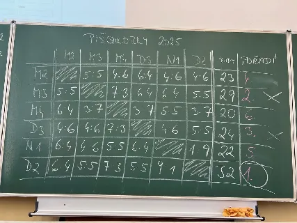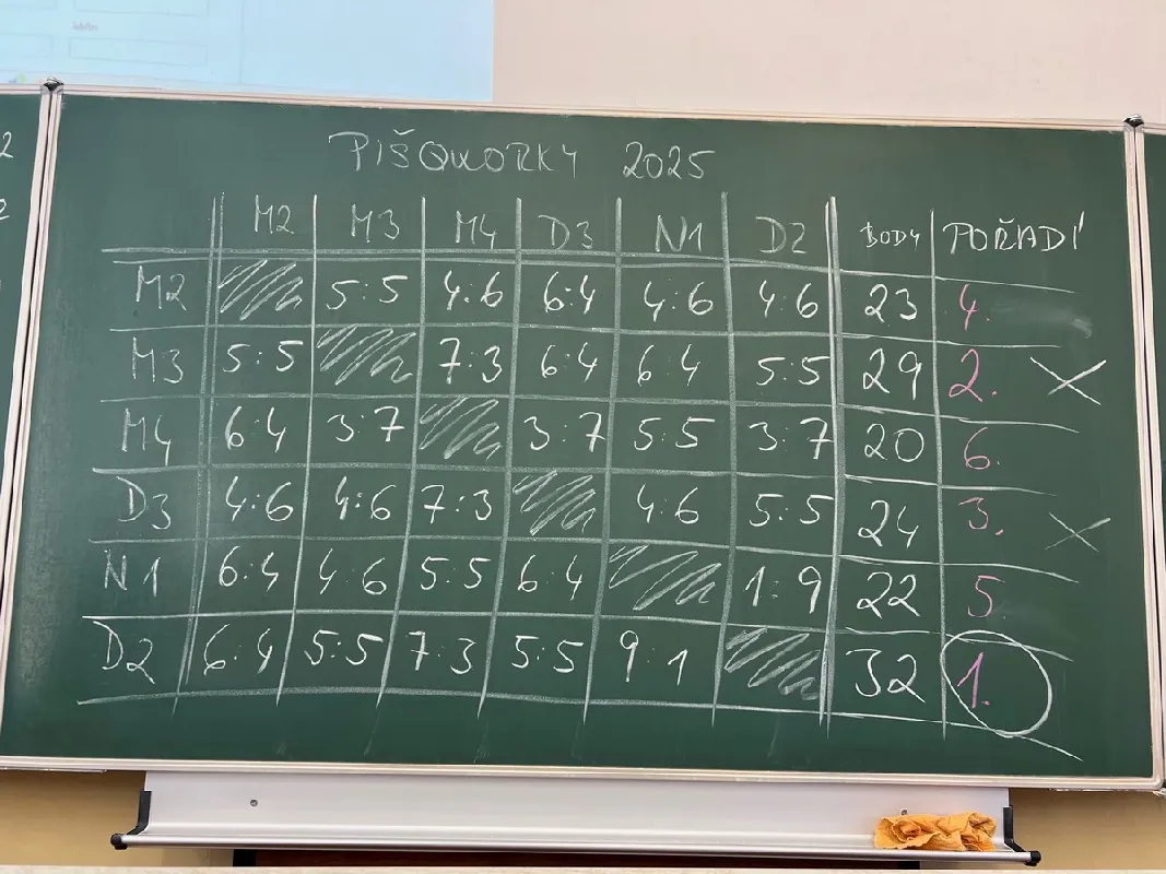 Školního kola se účastnilo šest týmů ze tříd M2, M3, M4, D2, D3, N1+2. Ve školním kole zvítězil tým ze třídy D2. Do oblastního kola (které proběhne 19. 11. 2025) budou vyslány tři týmy.