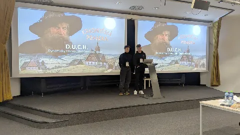 Dne 25. 11. 2025 proběhla v Plzni soutěž ROBO 2025. Naši školu reprezentoval jeden team, složený ze žáků čtvrtého ročníku třídy M4 - Jiří Doležal a David Kolomazník. Ze zúčastněných 36 teamů jsme se umístili na pěkném 7. místě, kde byly zahrnuty jednotlivé kategorie hodnocení – nejlepší jízda, nejlepší prezentace a nejlepší design.
