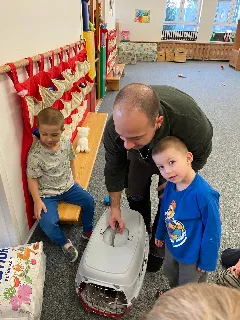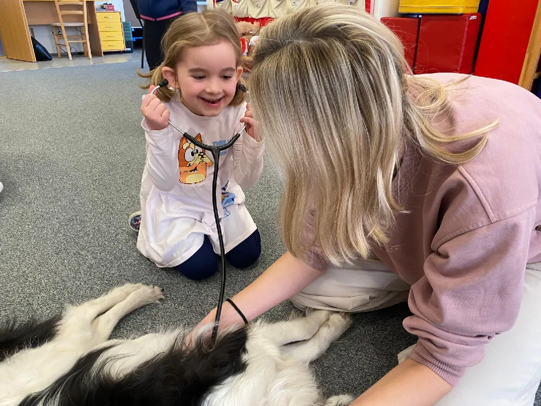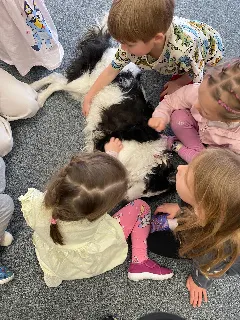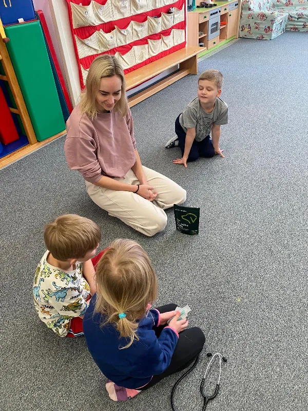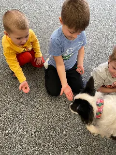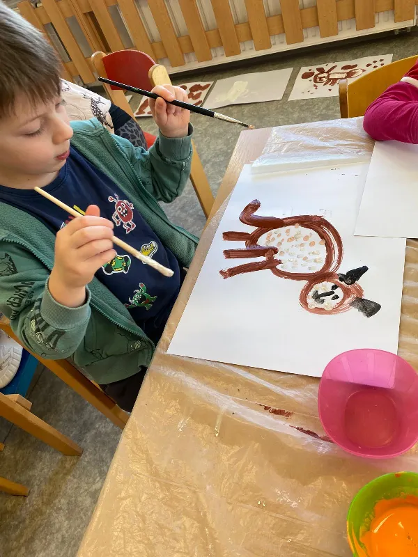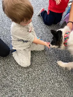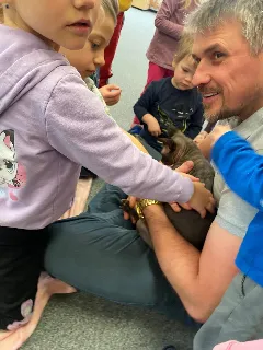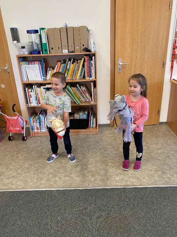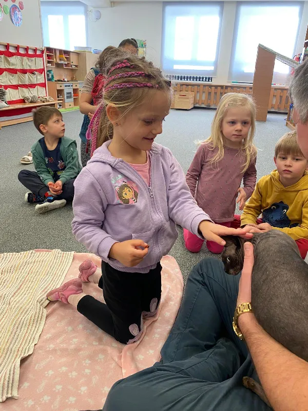 V pondělí jsme si povídali o drůbeži, v úterý jsme si zahráli na koníky. Ve středu nás navštívil živý kocourek a kočička. Ty jsme si společně také namalovali. Ve čtvrtek nás MVDr. Barbora Kykalová seznámila s péčí o domácí zvířata. Díky její fence jsme si např. mohli fonendoskopem poslechnou tlukot zvířecího srdce, prohlédnout zuby, uši a drápky. Pátek patřil dalším druhům domácích zvířat. Společně jsme se seznámili díky obrázkům a doneseným modelům s ovcí, kozou, prasetem, králíkem či morčetem.