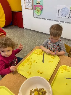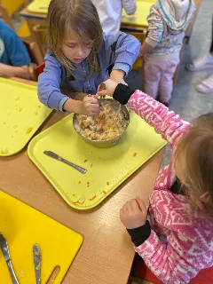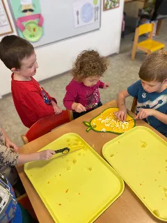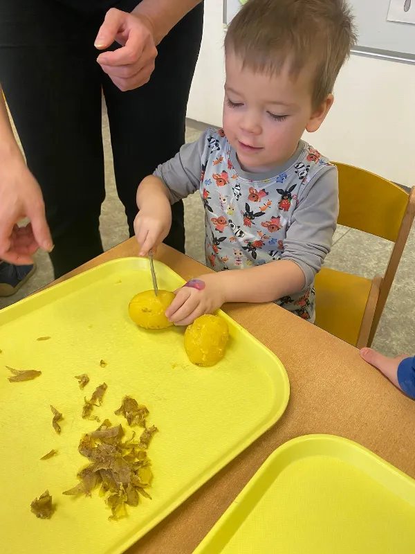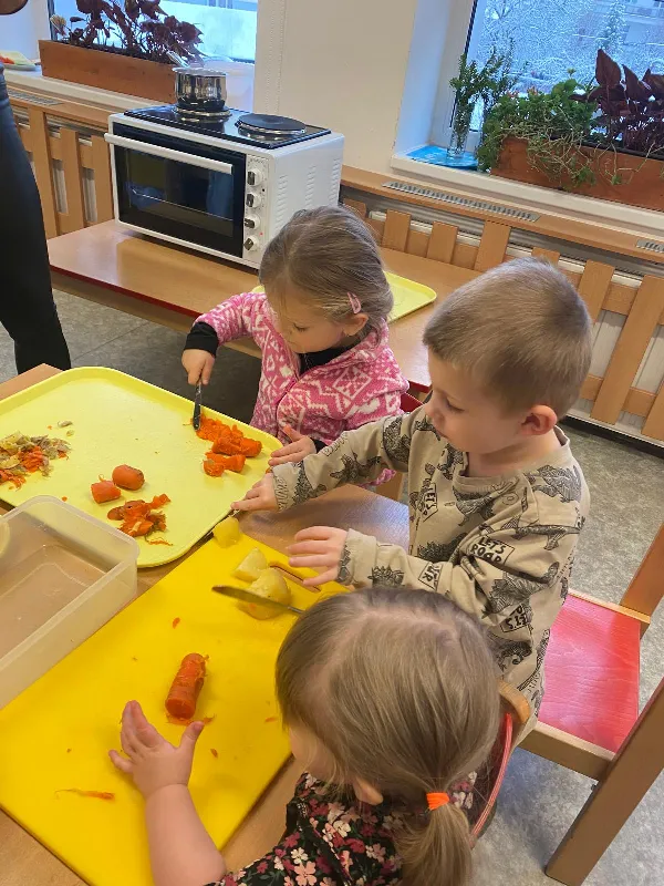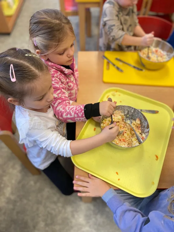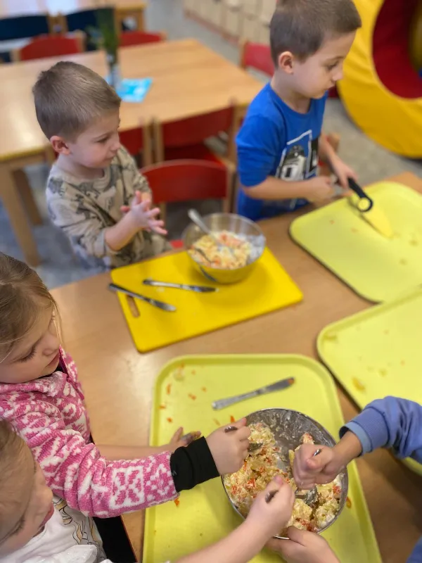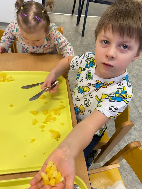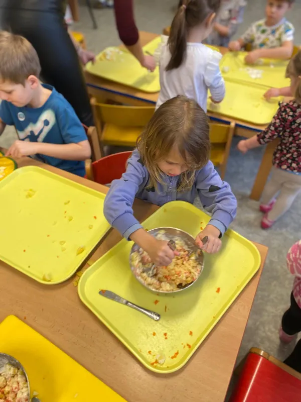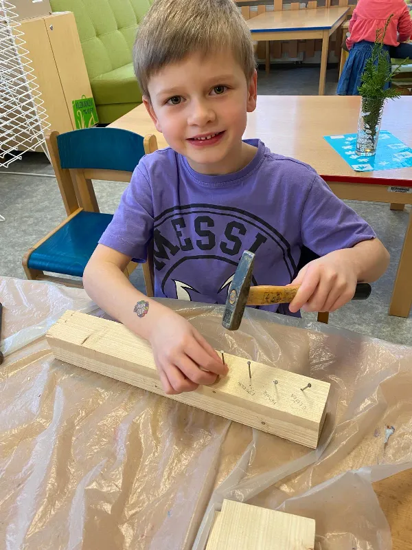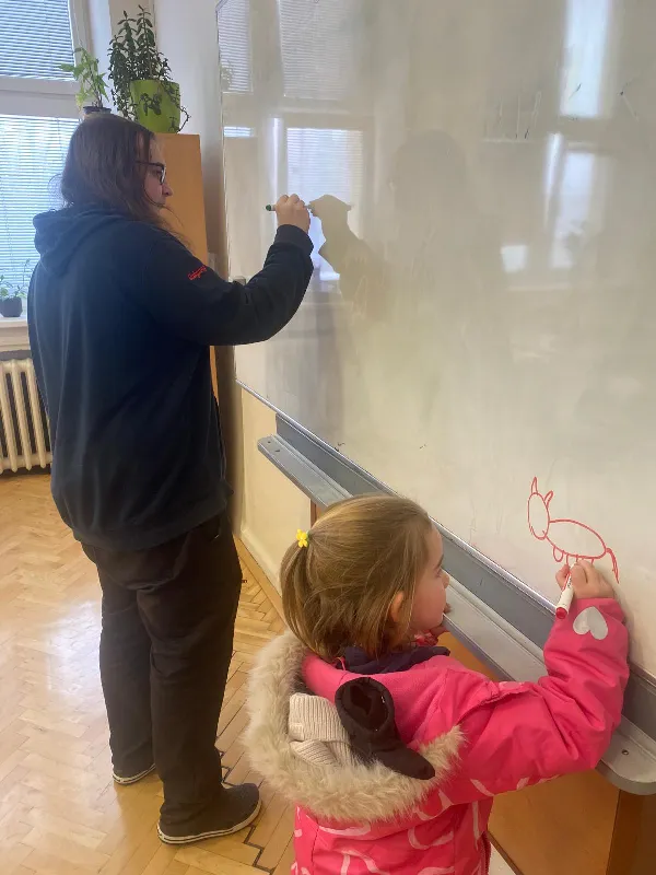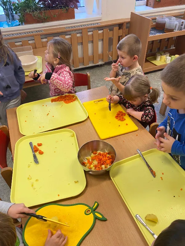 S dětmi jsme během týdne poznávali různá povolání. Vyzkoušeli jsme si například zatloukat hřebíky, pracovat s kleštěmi. Také jsme pekli lívance a připravili bramborový salát. Navštívila nás paní učitelka, která s námi vyzkoušela anglická slovíčka a zajímavé hry v angličtině. V dílnách jsme poznávali, jak se opravují auta a pracuje s pneumatikami. Navštívili jsme také studenty v hodině českého jazyka a společně plnili úkoly. Máme spoustu zážitků a témat k přemýšlení o tom, čím bychom mohli být.