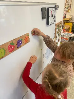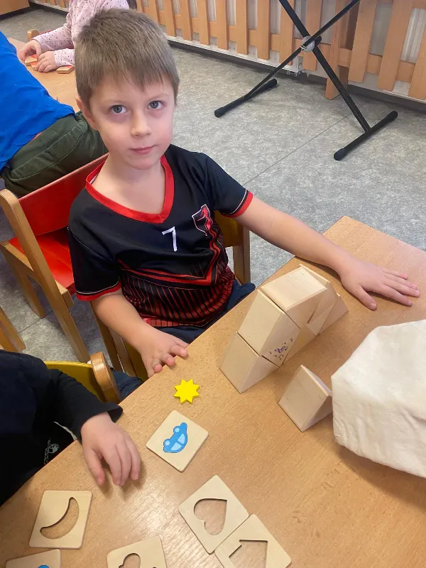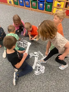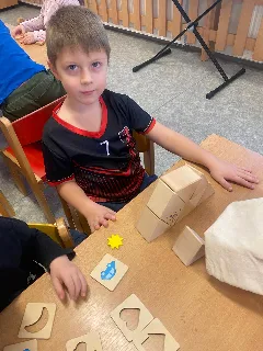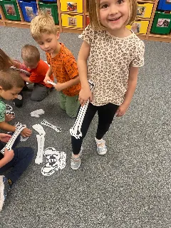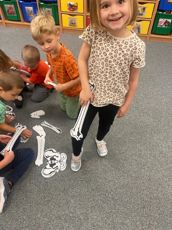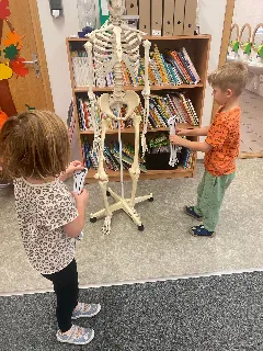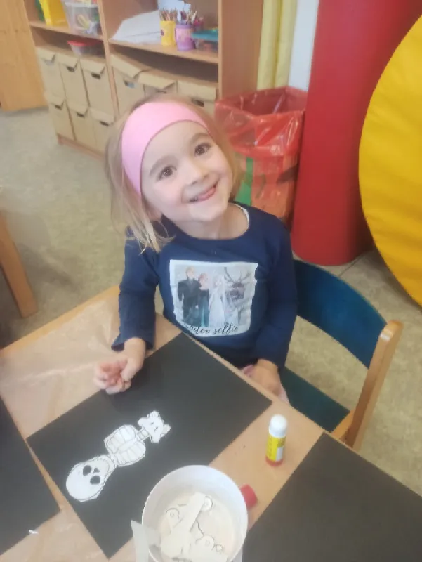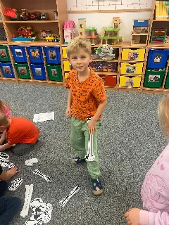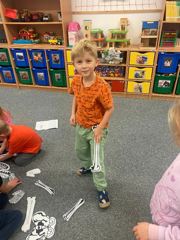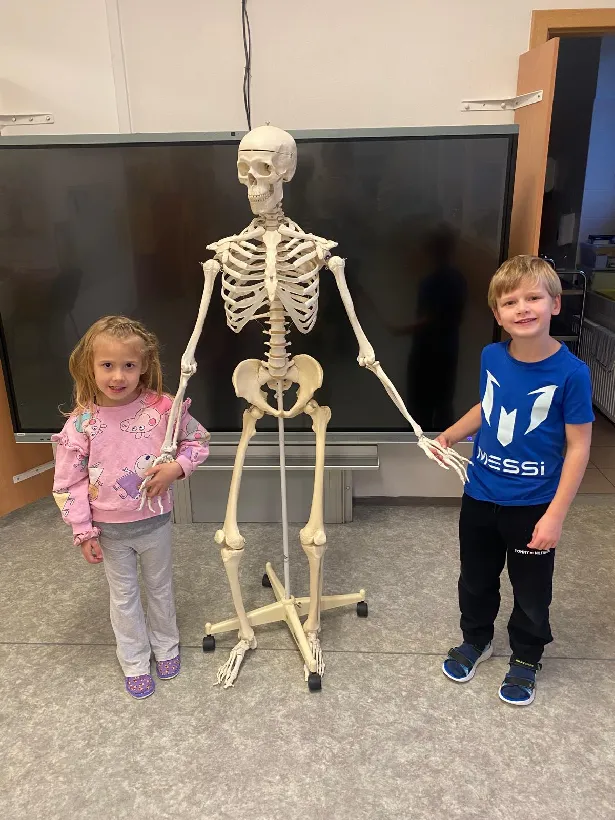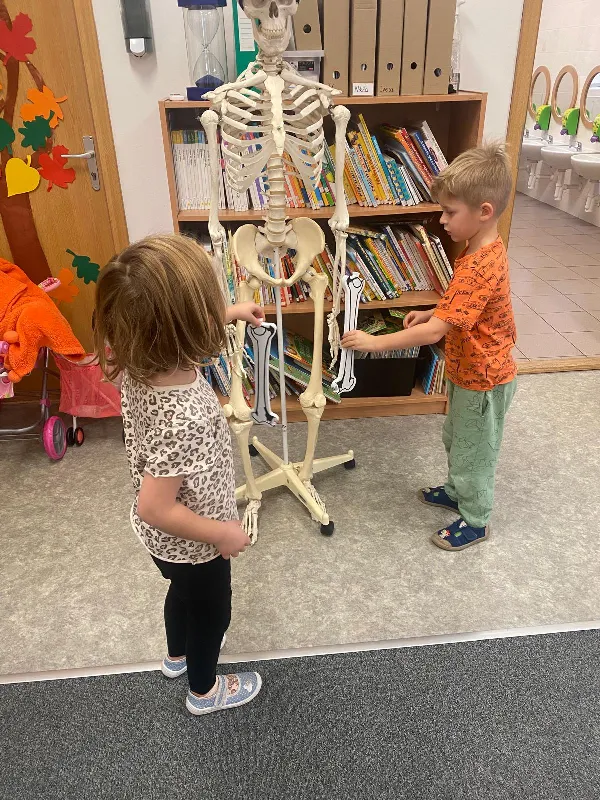 Ve školce nás navštívila „Boženka“ (maketa kostry), na které jsme poznávali všechny kosti v těle. Tvořili jsme vlastní ruku i s jejími kostmi, modelovali postavu a zkoušeli sestavit kostru těla z jednotlivých částí.