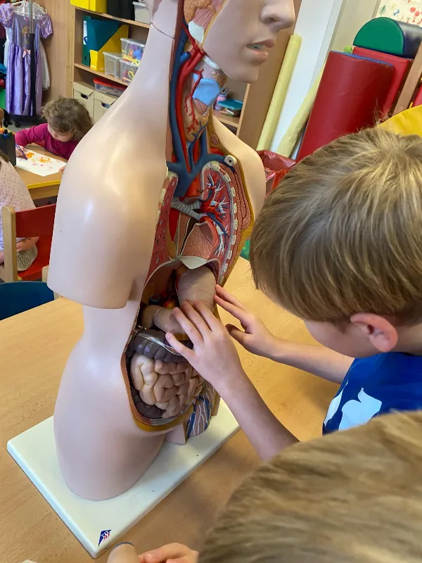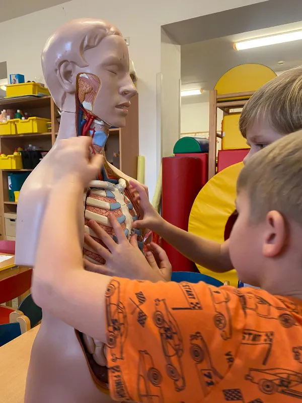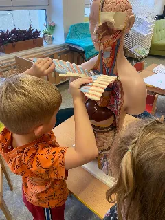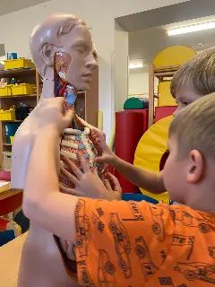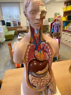 Děti se těšily také na „Sárinku“ (maketa těla s vnitřními orgány), která nám umožnila prozkoumat tělo i zevnitř.