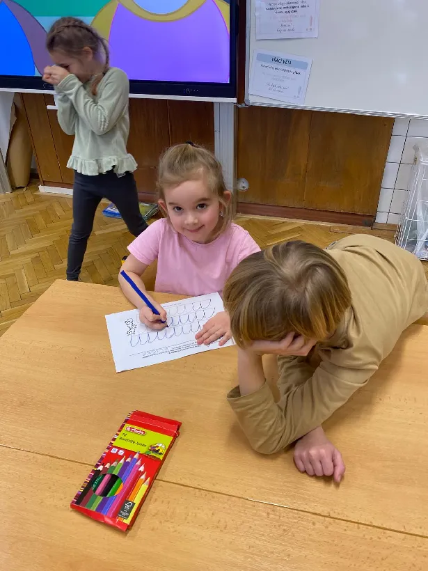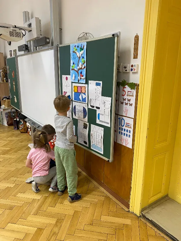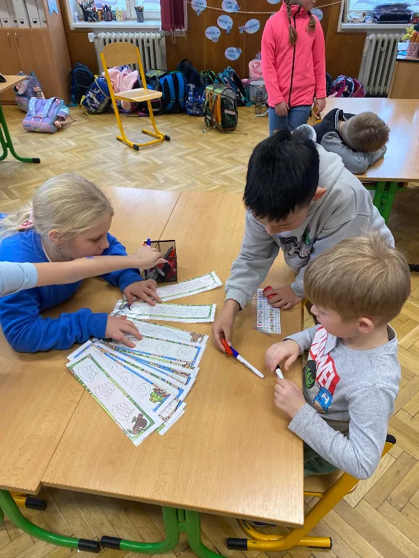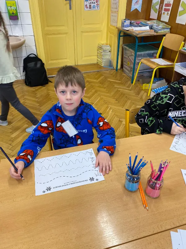 Předškoláci navštívili nedalekou základní školu U ŠKOLY. Seznámili se s dětmi z prvních i druhých tříd. Vyzkoušeli si činnosti, které by měl školák zvládnout. Plnili různé úkoly od paní učitelky a prohlédli si prostory. Zjistili jsme, že škola přináší spoustu zajímavostí a o to více se do ní těšíme.