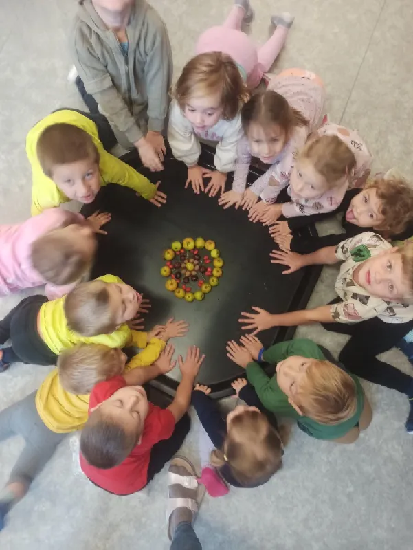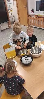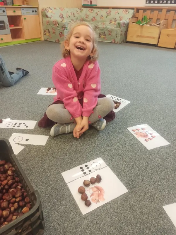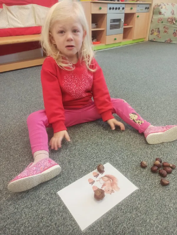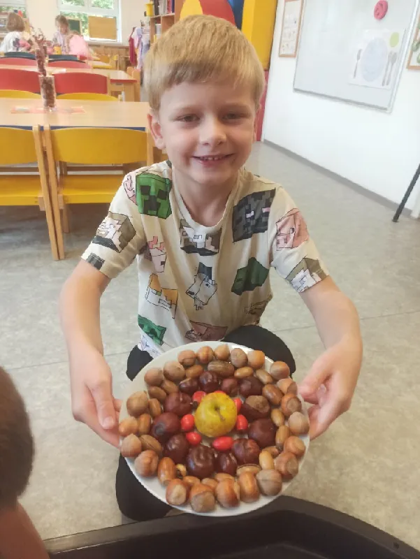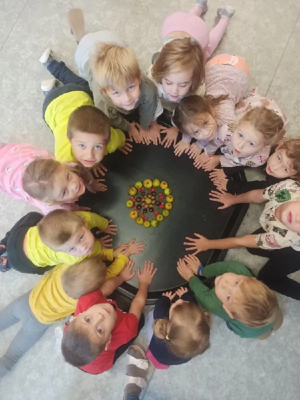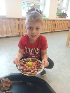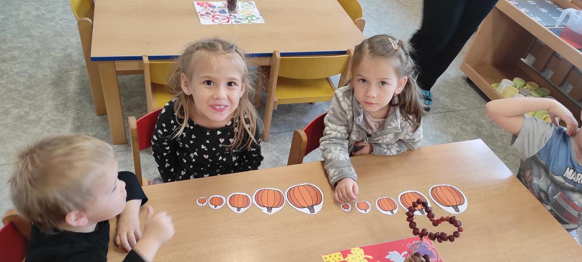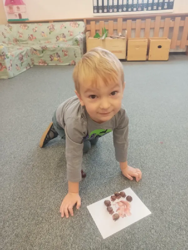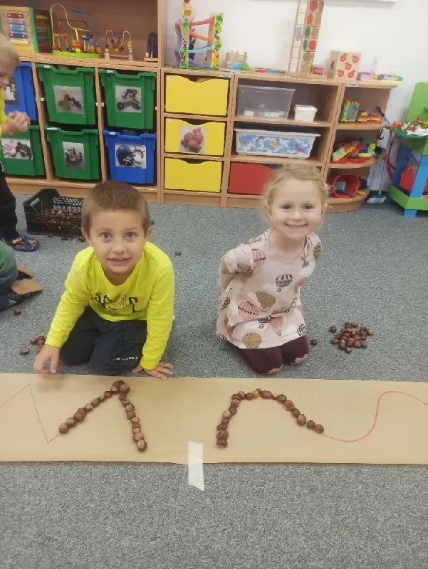 Podzim k nám přinesl spoustu barev, vůní a nápadů. Celý měsíc děti tvořily z přírodnin, které objevily na školkové zahrádce. Na vycházkách jsme společně zkoumali a pozorovali proměny podzimní přírody, která byla inspirací pro skupinové i individuální tvoření. Z nasbíraných pokladů vznikly krásné mandaly, nechybělo ani kouzlo ledu - z ledových koulí děti dolovaly ukryté přírodniny. V rámci podzimního vaření a pečení vznikla dýňová bábovka, voňavý jablečný štrúdl, batátová polévka i nadýchané jablečné lívanečky. Na všem jsme si moc pochutnali! Zažili jsme spoustu radosti z objevování a těšíme se na další společně strávené podzimní dny.