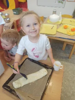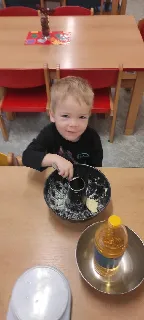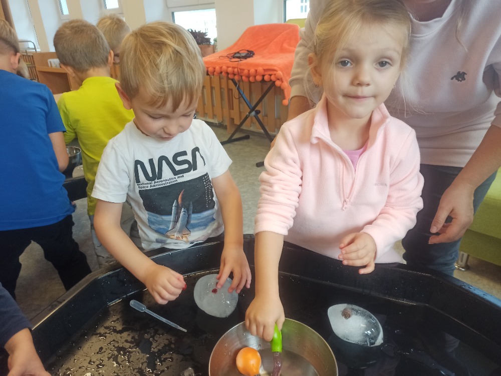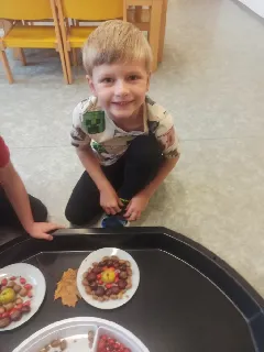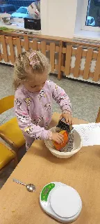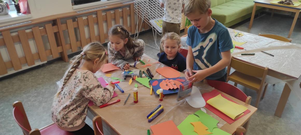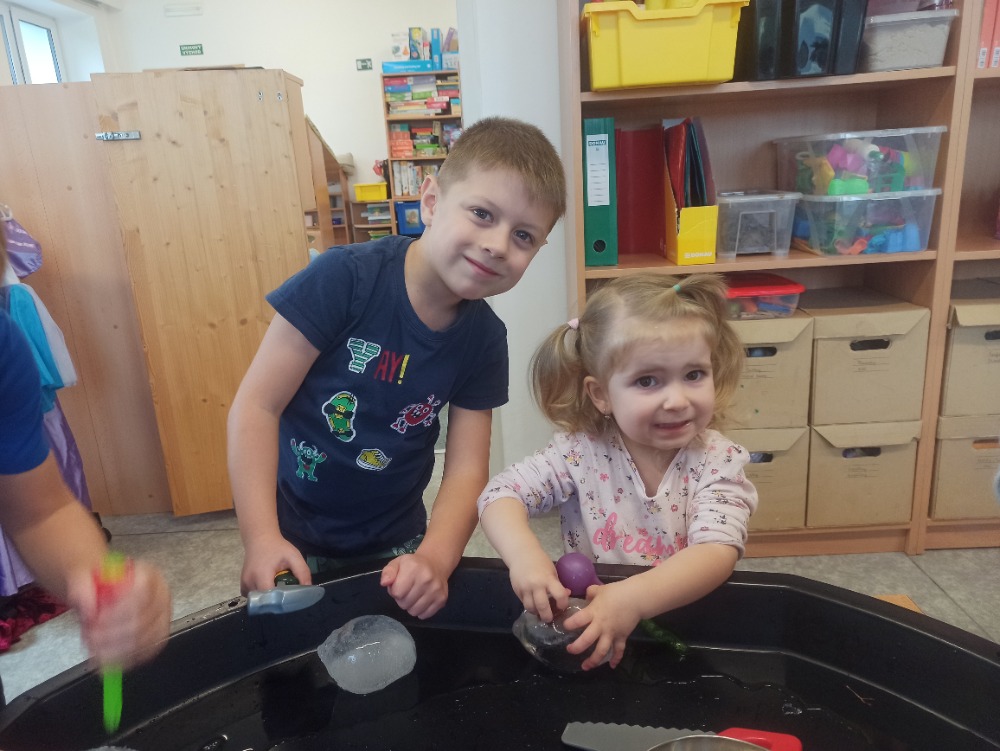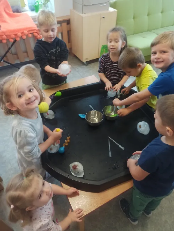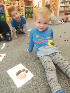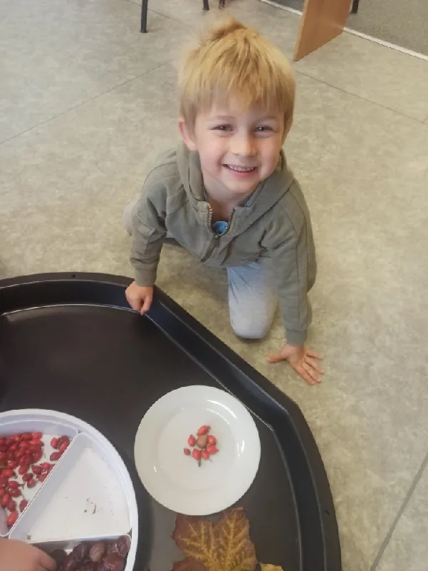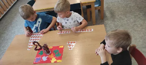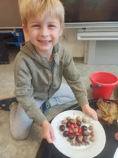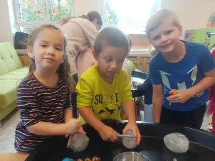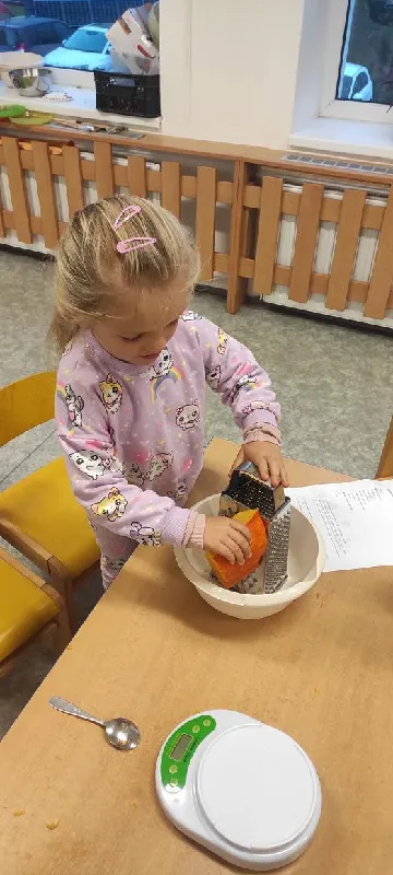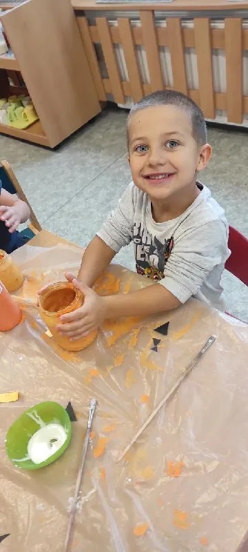 Podzim k nám přinesl spoustu barev, vůní a nápadů. Celý měsíc děti tvořily z přírodnin, které objevily na školkové zahrádce. Na vycházkách jsme společně zkoumali a pozorovali proměny podzimní přírody, která byla inspirací pro skupinové i individuální tvoření. Z nasbíraných pokladů vznikly krásné mandaly, nechybělo ani kouzlo ledu - z ledových koulí děti dolovaly ukryté přírodniny. V rámci podzimního vaření a pečení vznikla dýňová bábovka, voňavý jablečný štrúdl, batátová polévka i nadýchané jablečné lívanečky. Na všem jsme si moc pochutnali! Zažili jsme spoustu radosti z objevování a těšíme se na další společně strávené podzimní dny.