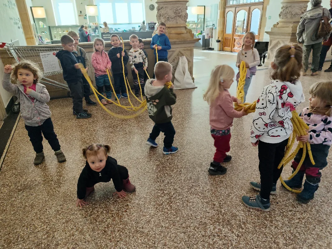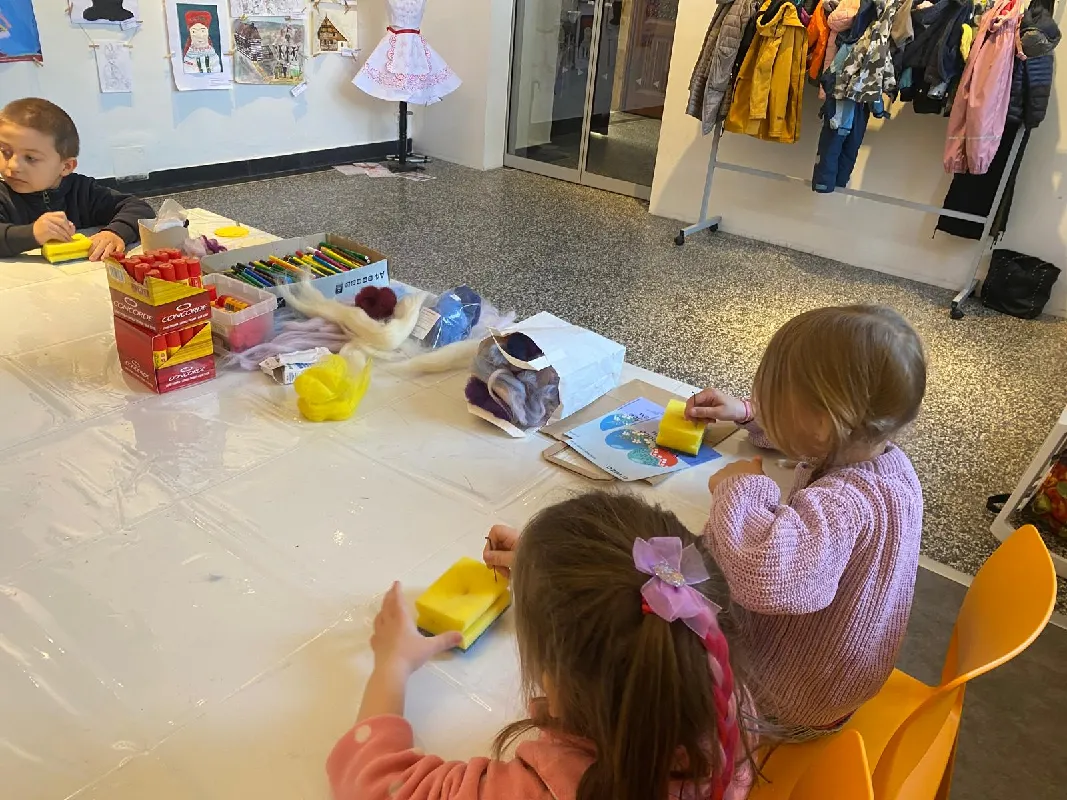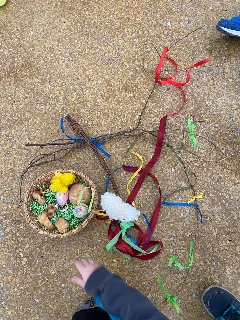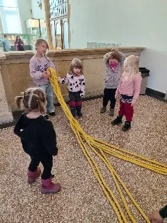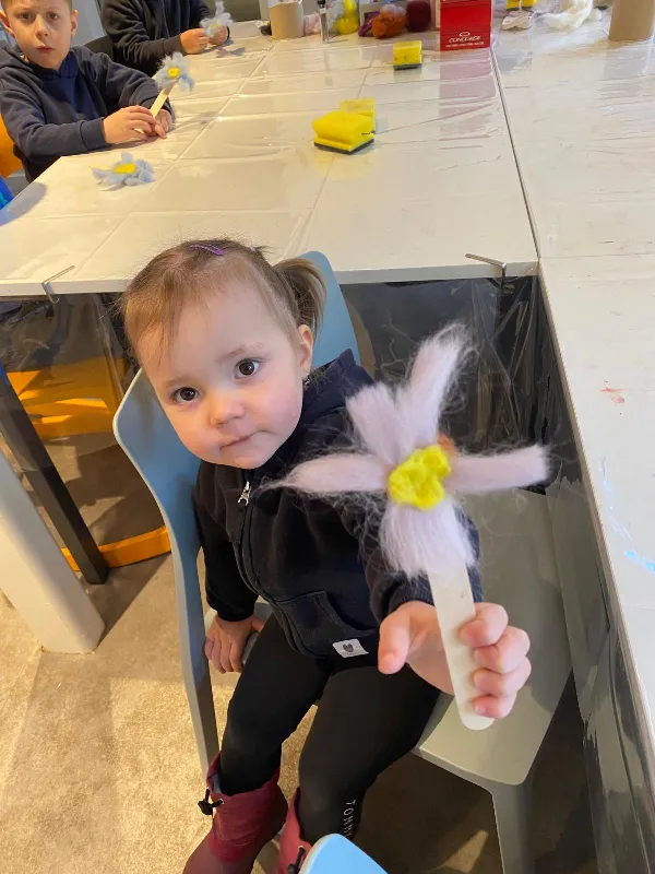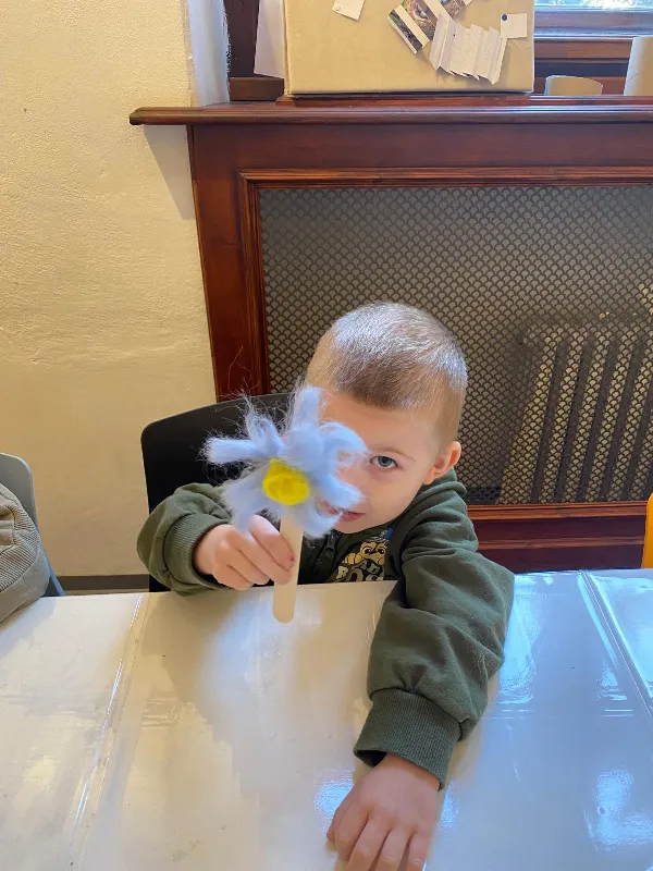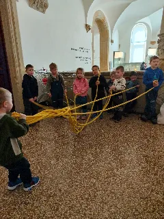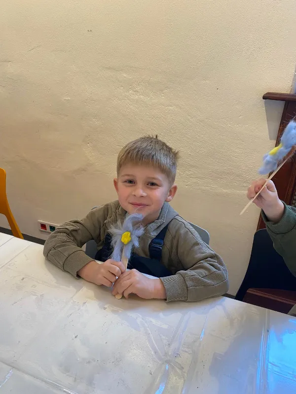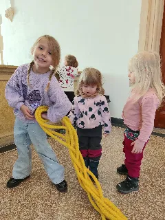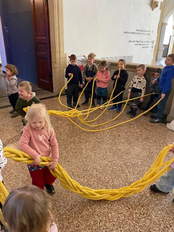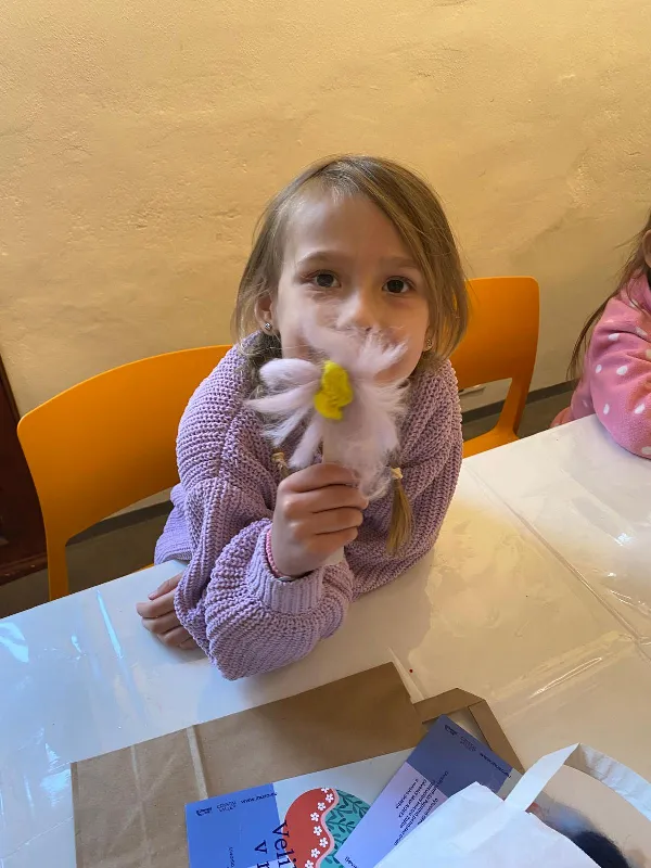Připraveny pro nás byly tvořivé i poznávací aktivity. Děti si vyrobily kytičku pomocí zajímavé techniky - plstění vlny. Společně jsme také pletli pomlázku, a to netradičně, pomocí velkých lan.