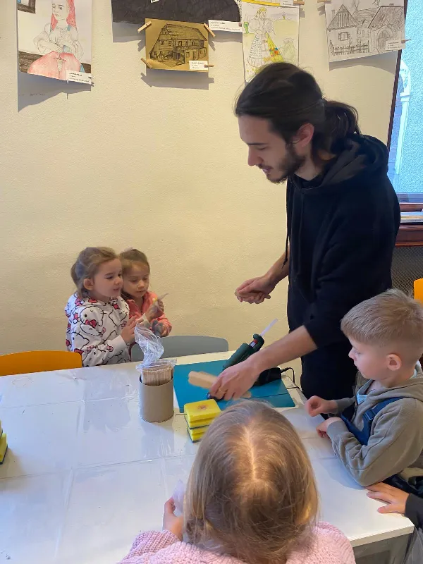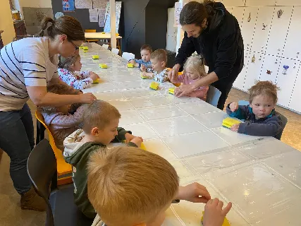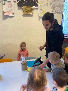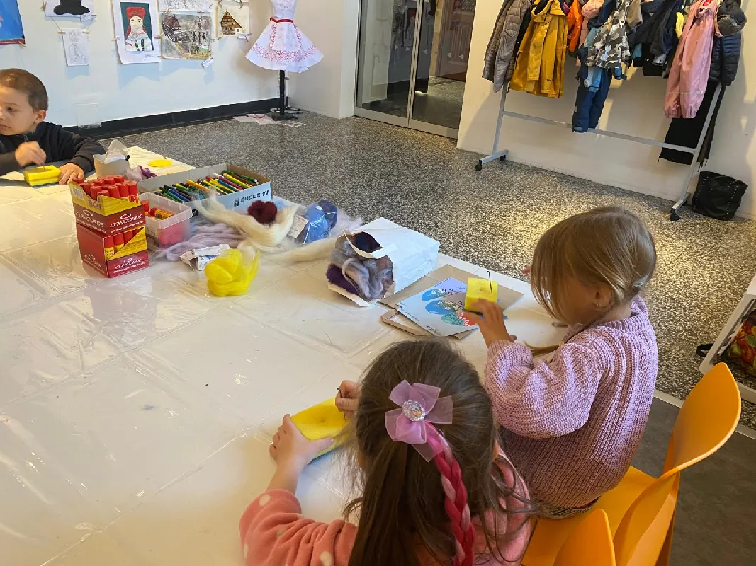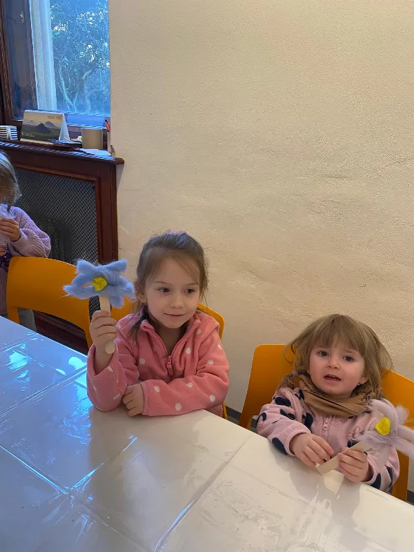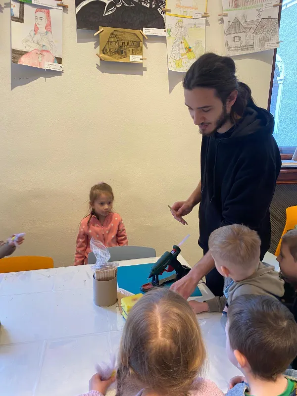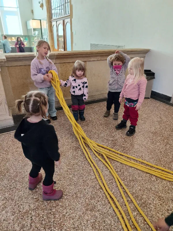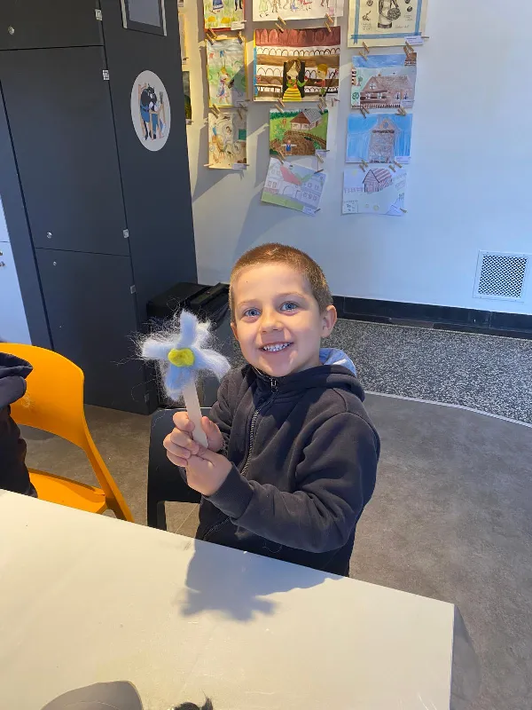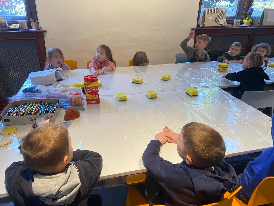 Připraveny pro nás byly tvořivé i poznávací aktivity. Děti si vyrobily kytičku pomocí zajímavé techniky - plstění vlny. Společně jsme také pletli pomlázku, a to netradičně, pomocí velkých lan.